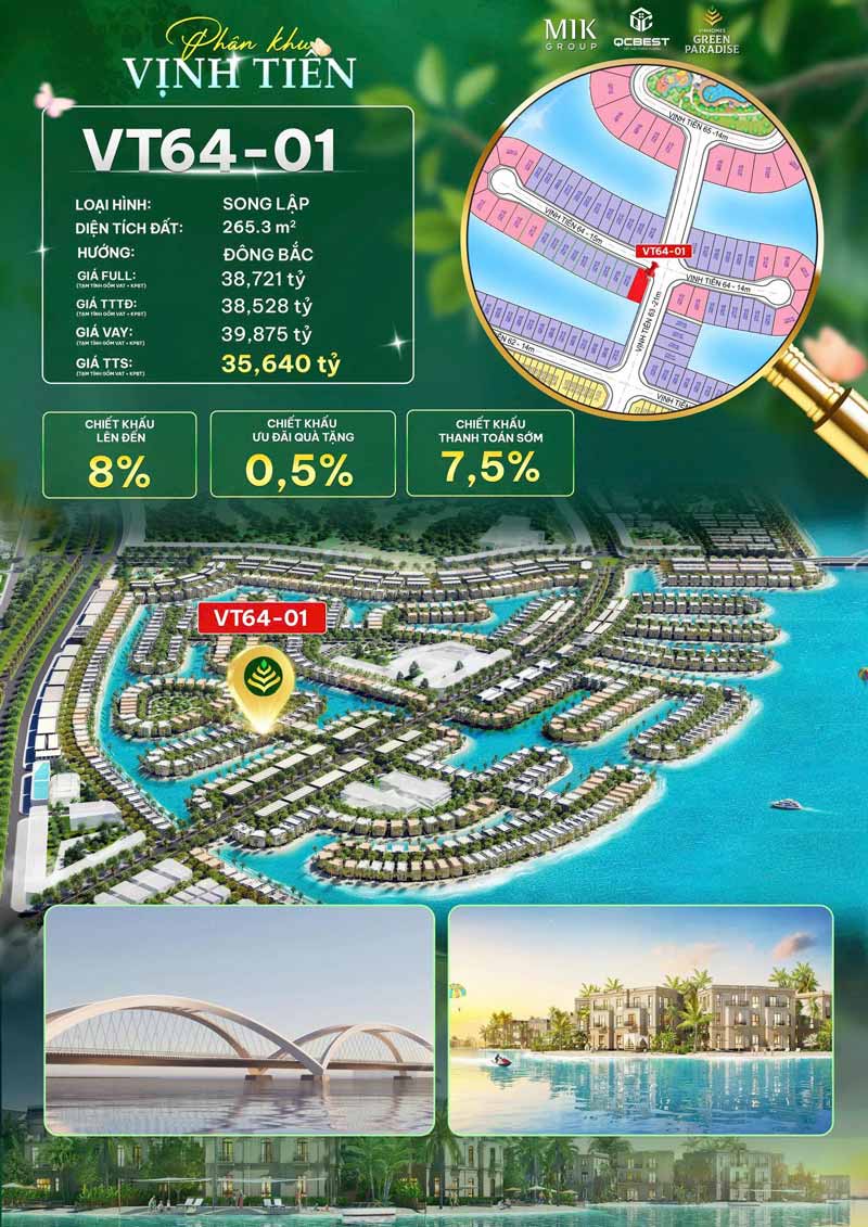 Bán Biệt Thự Song Lập VT64-01 Vịnh Tiên Vinhomes Cần Giờ Góc 2MT View Biển, diện tích lớn, giá 35.640 tỷ, đầu tư và nghỉ dưỡng lý tưởng