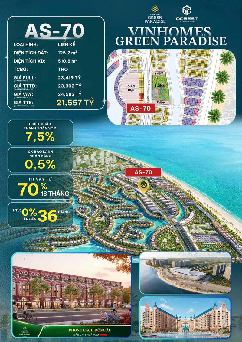 Bán Nhà Phố AS-70 Vịnh Ngọc Vinhomes Cần Giờ Trục 50m View Công Viên, vị trí đẹp, phù hợp ở và kinh doanh. Giá tốt 21.557 tỷ, tiềm năng tăng giá cao.